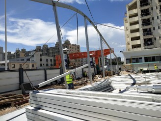 時下正值高溫酷暑季節,似火的驕陽炙烤著大地。高溫悶熱天氣讓人們都躲在空調屋里不愿出門,但為解決企業旺季倉儲所需空間,華燁篷房搭建團隊奮戰在施工現場,頂烈日、戰高溫、抓進度、重質量,堅守崗位接受高溫的“烤”驗。