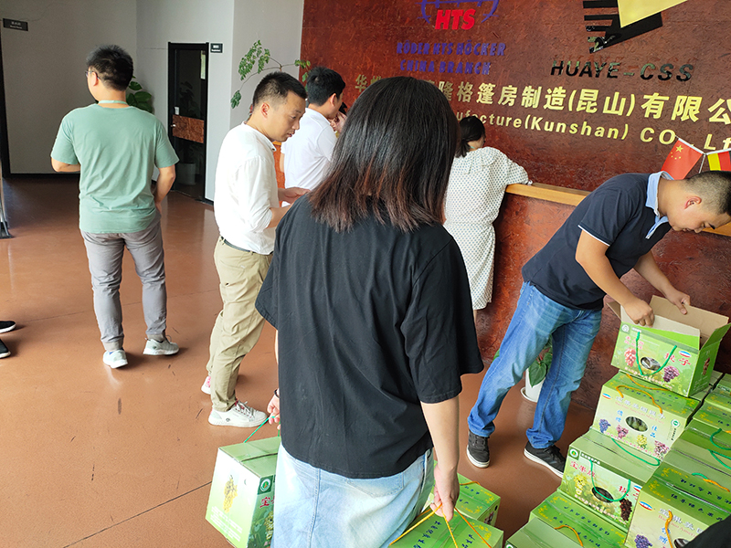 臺風剛過,昆山又迎來了炎炎夏日,華燁篷房為了給辛苦工作的小伙伴們降溫解暑,特地采購了一批紅提,慰勞廣大的、可愛的勞動人民~