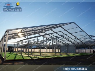 華燁大型展棚的跨度為3米至80米。由于采用了模塊式構(gòu)建系統(tǒng),可根據(jù)要求將篷房的單元距離擴大至5米。