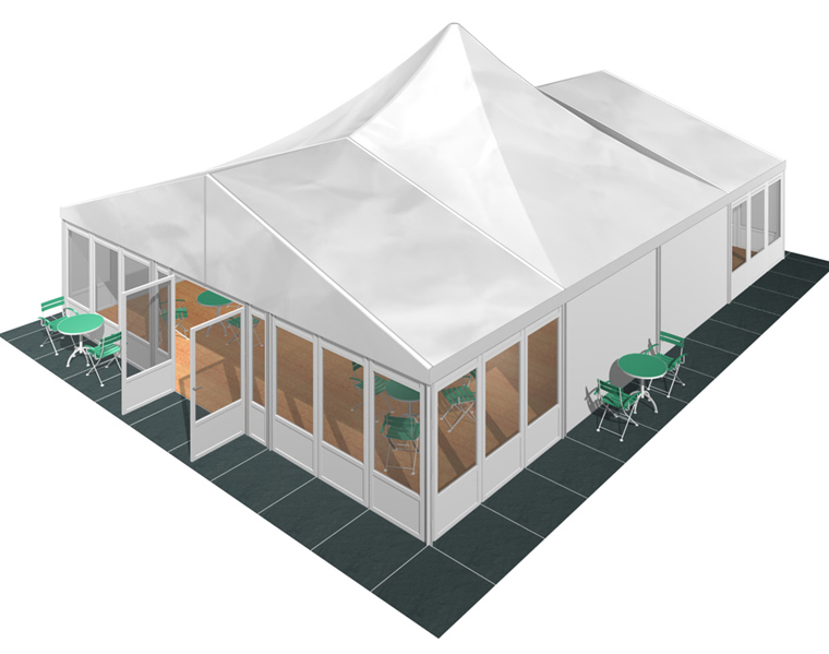 *在篷房配套上,華燁篷房廠家可提供地板、玻璃門、各種墻體。還有篷房專用空調(diào)、地毯、燈飾、承重盤、排水槽等等,也許您的需求可能與上圖所示不同,請直接聯(lián)系我們,了解此結(jié)構(gòu)可用的配件。